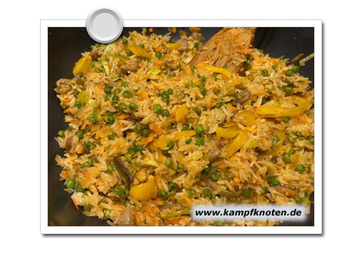 Aber zunächst muss gekocht werden. Reispfanne mit Gemüse.. Ganz lecker.. Viel Geschnippel..