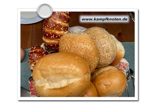 Obwohl wir wirklich aufm Dorf wohnen, haben die Bäckereien sonntags geöffnet.. Also bringen wir Brötchen mit..