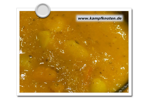 Wieder zuhause wollte ich eigentlich Kuchen essen. Aber die anderen wollen vorher was „Richtiges“. Merkwürdig.  Also essen wir Kürbisgulasch.. und dann endlich Kuchen: