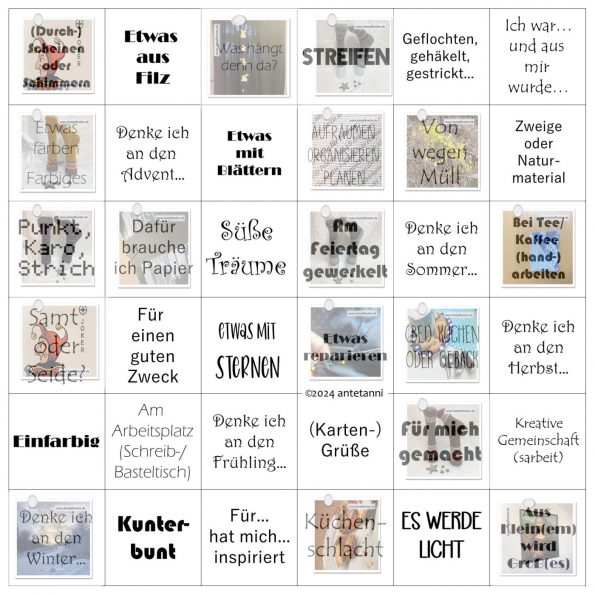 Dank meiner to-do List Punkt 34 hatte ich mir das Bingofeld angeschaut und überhaupt ist ja auch schon bald Zeigetag und irgendwie komme ich ja nicht so richtig in die Puschen.. (anderes Thema.. ).