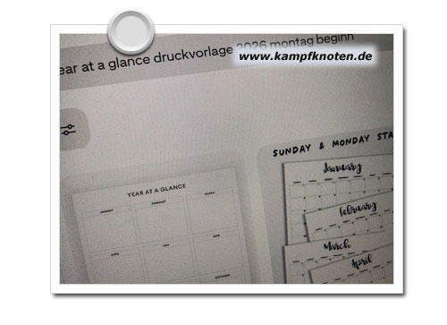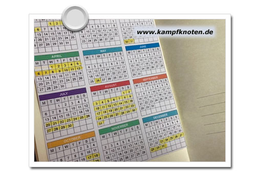 und dann schon mal die Monatsübersichten einsortiert und die Jahresübersicht mit den Schulferien eingeklebt: