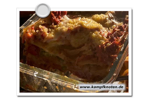 Ich war zumindest sehr überrascht, dass die vegane Bechamelsauce echt lecker war. Ich hatte es gehofft, dass das so klappt, aber sicher war ich keineswegs… Die Hefeflocken ersetzen den Parmesan ganz gut… Der geriebene vegane Käse kann vermutlich den Mozzarella nicht so gut ersetzen… Ich sags ja: veganer Käse… eine Herausforderung für mich..