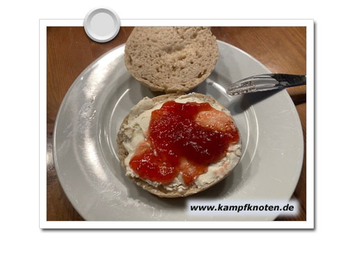 Aber weil das Feld nun „Marmelade zum Frühstück“ heisst, probierte ich das nach längerer Pause mal wieder aus.. Mit NaturFrischkäse drunter