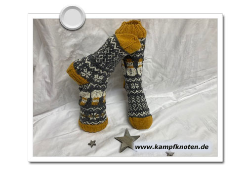 und ja.. auf den Bildern sehen die Socken arg wellig aus, dass liegt daran, dass ich sie nicht auf die „grossen Showfüsse“ ziehen kann. Denn bei einer Socke habe ich den Faden zu fest angezogen und diese Socke lässt sich etwas sperrig anziehen… Die andere Socke passt super.. (kannste Dir nicht ausdenken so einen Quatsch)