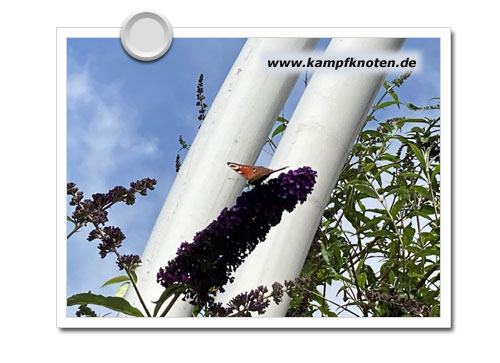 Darüber freue ich mich jedenfalls derzeit am Meisten. Denn neben dem Lavendel fängt jetzt auch der Flieder an zu blühen und überall summt und brummt es in den lilafarbenen Blüten… Das Tagpfauenauge hat sich etwas geziert beim Fotografieren.. und ich musste mich ganz schön biegen.. So wie der Flieder, der sich um das Gestänge vom Sonnenschirm wuchert..