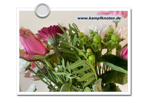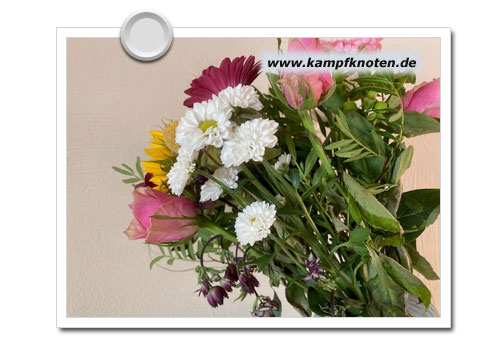 Um nach dem Urlaub (ich hatte Urlaub?) zumindest einen Farbklecks im Wohnzimmer zu haben, kaufte ich beim Lebensmitteleinkauf einen Blumenstrauss so im Vorbeigehen….