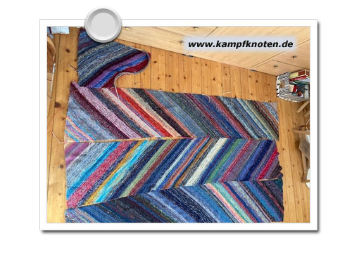 ja also gut.. einen Streifen hab ich geschafft.. aber beim auslegen hatte ich den deutlichen Verdacht, dass der etwas lang geworden ist. Egal. Ribbeln geht ja schnell. Insgesamt sollen es ja 5 Streifen werden… das wird mich also noch eeeeeeeewig begleiten